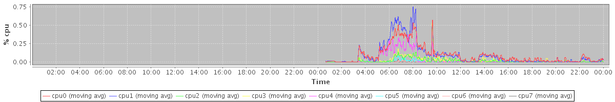 avg(cpu0) = 0.09 avg(cpu1) = 0.09 avg(cpu2) = 0.02 avg(cpu3) = 0.02 avg(cpu4) = 0.03 avg(cpu5) = 0.01 avg(cpu6) = 0.00 avg(cpu7) = 0.00
