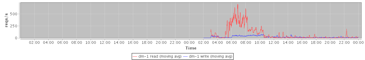 avg(dm-1 read) = 1510.56 avg(dm-1 write) = 235.73