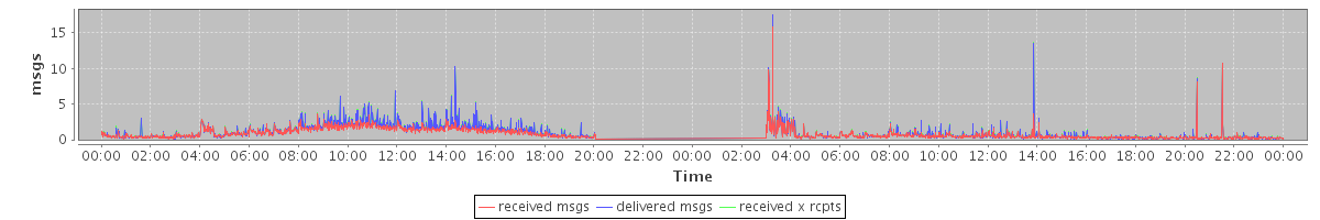 avg(received msgs) = 0.81 avg(delivered msgs) = 0.96 avg(received x rcpts) = 0.99