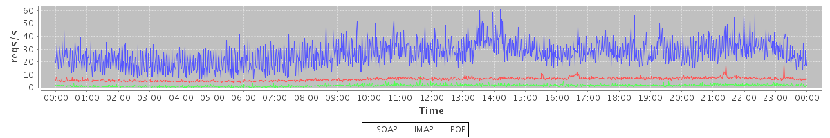 Host zm02.stanford.edu: Mailboxd: Request Rate by Client Protocol