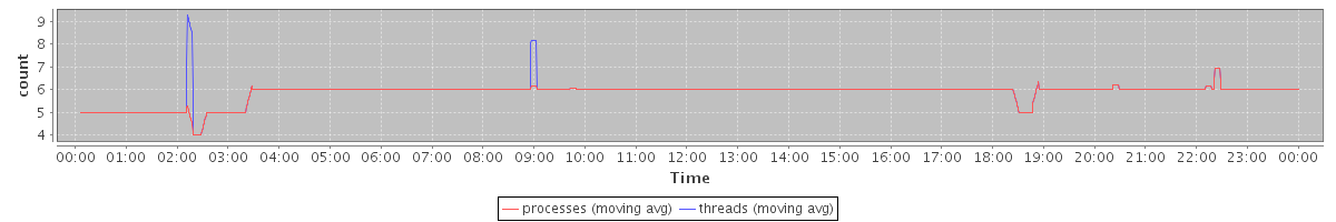 avg(processes) = 5.84 avg(threads) = 5.87