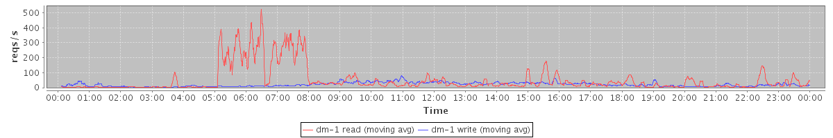 avg(dm-0 read) = 540.42 avg(dm-0 write) = 655.80