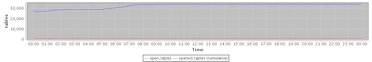 avg(open_tables) = 1192.88 avg(opened_tables (cumulative)) = 32524.25