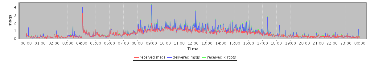 avg(received msgs) = 0.60 avg(delivered msgs) = 0.70 avg(received x rcpts) = 0.73