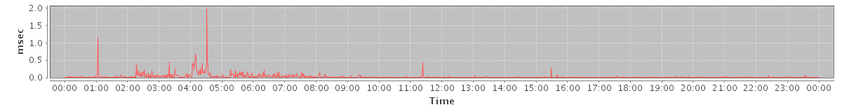 avg(SendMsgRequest) = 489.59 avg(DeleteAccountRequest) = 34587.50 avg(BackupQueryRequest) = 491.83 avg(GetAggregateQuotaUsageOnServerRequest) = 1433.00 avg(FolderActionRequest.delete) = 367.87 avg(SendInviteReplyRequest) = 677.74 avg(ContactActionRequest.delete) = 620.67 avg(SyncGalAccountRequest) = 75252.04 avg(BackupRequest) = 3487.00 avg(GetQuotaUsageRequest) = 1426.00
