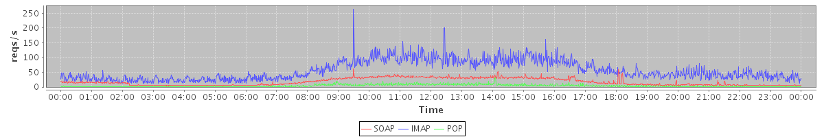 Host zm04.stanford.edu: Mailboxd: Request Rate by Client Protocol