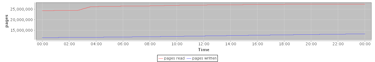 avg(pages read) = 26620687.07 avg(pages written) = 12319572.83