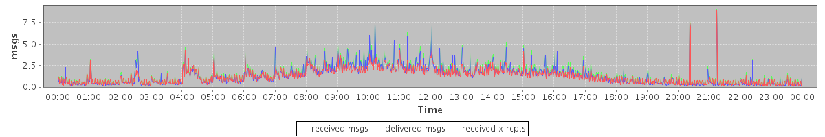 avg(received msgs) = 1.25 avg(delivered msgs) = 1.31 avg(received x rcpts) = 1.49