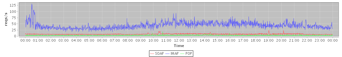 Host zm05.stanford.edu: Mailboxd: Request Rate by Client Protocol