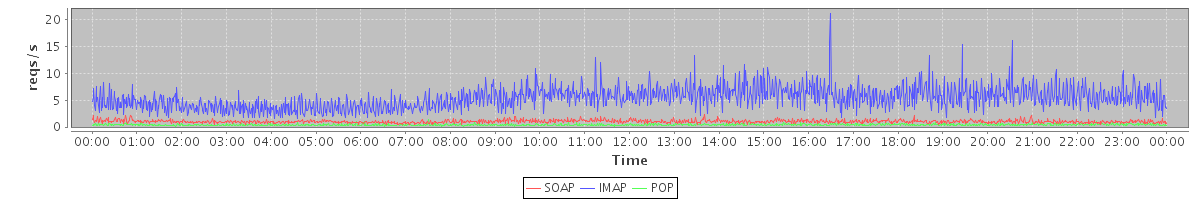 Host zm21.stanford.edu: Mailboxd: Request Rate by Client Protocol