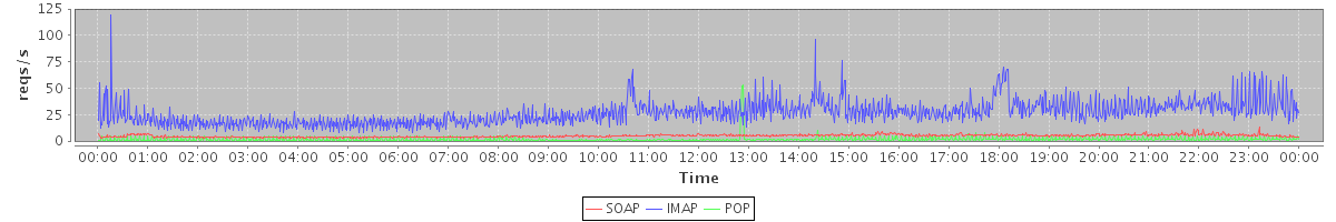 Host zm01.stanford.edu: Mailboxd: Request Rate by Client Protocol