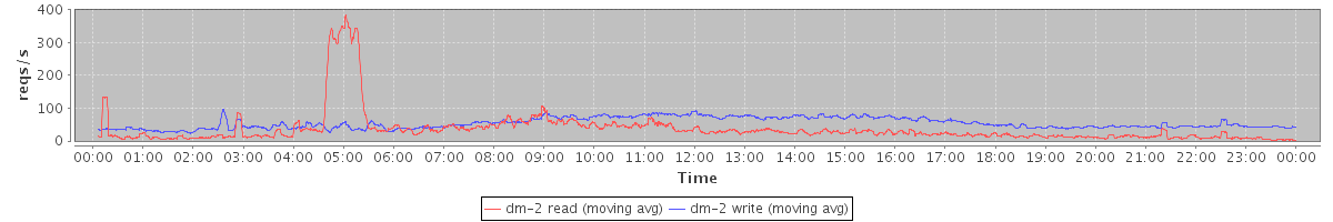 avg(dm-0 read) = 952.58 avg(dm-0 write) = 461.60