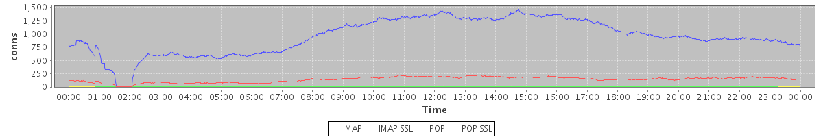 Host zm02.stanford.edu: Mailboxd: Active Connections by Client Protocol