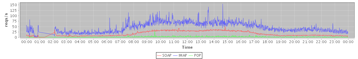 Host zm02.stanford.edu: Mailboxd: Request Rate by Client Protocol