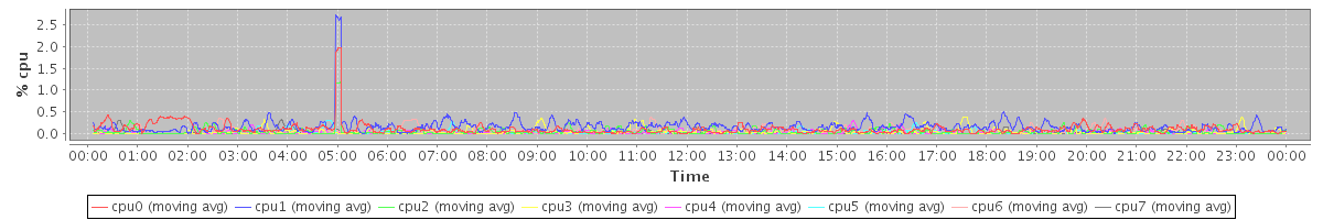 avg(cpu0) = 0.11 avg(cpu1) = 0.16 avg(cpu2) = 0.05 avg(cpu3) = 0.04 avg(cpu4) = 0.03 avg(cpu5) = 0.02 avg(cpu6) = 0.05 avg(cpu7) = 0.02