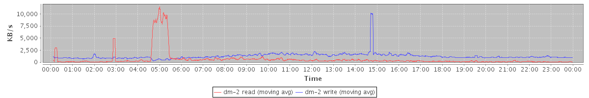 avg(dm-2 read) = 630.46 avg(dm-2 write) = 1240.93