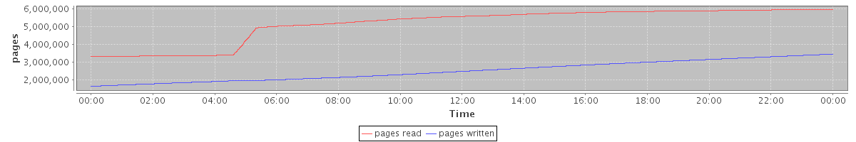 avg(pages read) = 5146395.91 avg(pages written) = 2501602.66