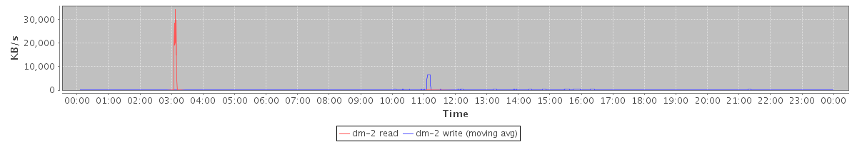 avg(dm-3 read) = 2.37 avg(dm-3 write) = 25.37