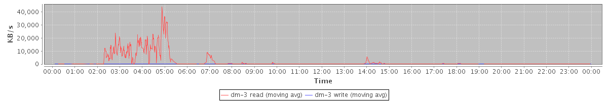 avg(dm-3 read) = 29.45 avg(dm-3 write) = 0.89