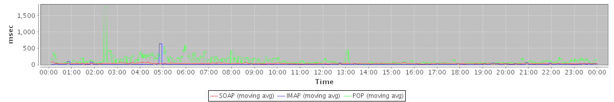 Host zm06.stanford.edu: Mailboxd: Response Time by Client Protocol