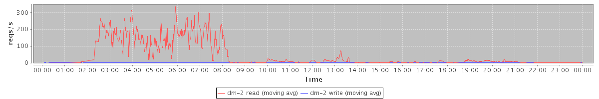 avg(dm-2 read) = 33.54 avg(dm-2 write) = 0.05