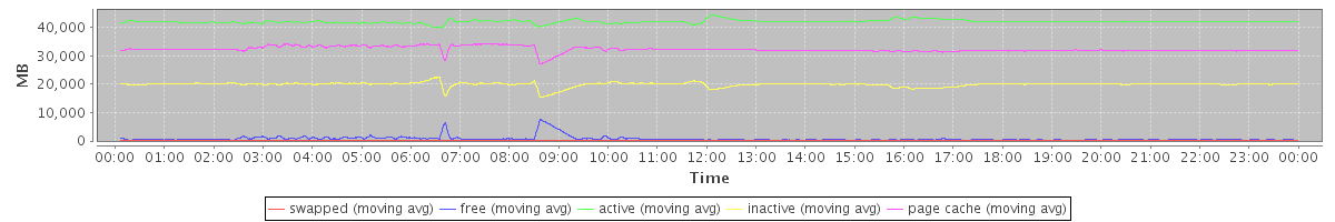 avg(swapped) = 30.29 avg(free) = 758.02 avg(active) = 42097.45 avg(inactive) = 19915.61 avg(page cache) = 32323.45