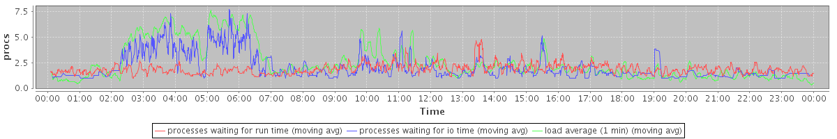 avg(processes waiting for run time) = 1.28 avg(processes waiting for io time) = 1.28 avg(load average (1 min)) = 2.50