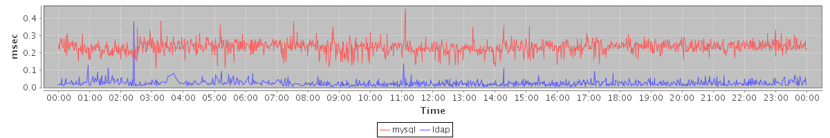 avg(mysql) = 0.23 avg(ldap) = 0.02