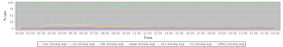avg(user) = 3.06 avg(sys) = 0.49 avg(idle) = 91.53 avg(iowait) = 4.73 avg(nice) = 0.10 avg(irq) = 0.00 avg(softirq) = 0.07