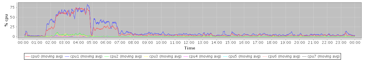 avg(cpu0) = 0.83 avg(cpu1) = 0.85 avg(cpu2) = 0.60 avg(cpu3) = 0.64 avg(cpu4) = 0.40 avg(cpu5) = 0.41 avg(cpu6) = 0.26 avg(cpu7) = 0.30