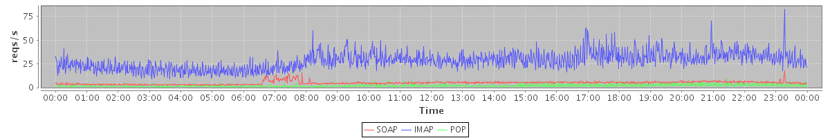 Host zm02.stanford.edu: Mailboxd: Request Rate by Client Protocol