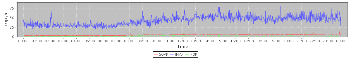 Host zm09.stanford.edu: Mailboxd: Request Rate by Client Protocol