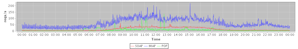 Host zm08.stanford.edu: Mailboxd: Request Rate by Client Protocol