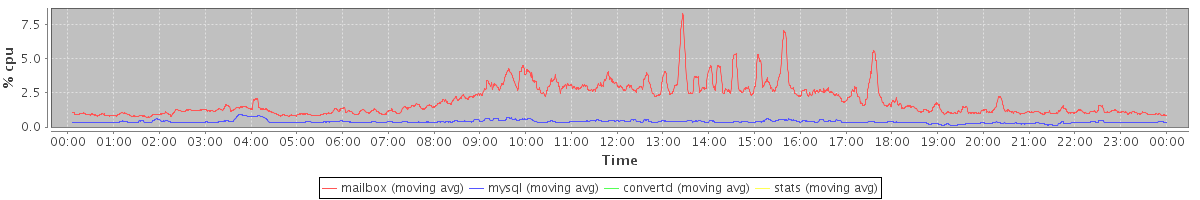 avg(mailbox) = 1.92 avg(mysql) = 0.38 avg(convertd) = 0.00 avg(stats) = 0.00