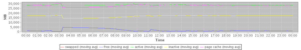 avg(swapped) = 0.10 avg(free) = 1651.01 avg(active) = 28782.22 avg(inactive) = 16683.31 avg(page cache) = 28005.56