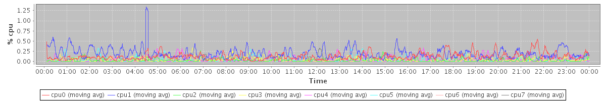 avg(cpu0) = 0.12 avg(cpu1) = 0.20 avg(cpu2) = 0.03 avg(cpu3) = 0.04 avg(cpu4) = 0.05 avg(cpu5) = 0.04 avg(cpu6) = 0.01 avg(cpu7) = 0.02