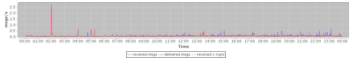 avg(received msgs) = 0.07 avg(delivered msgs) = 0.08 avg(received x rcpts) = 0.08