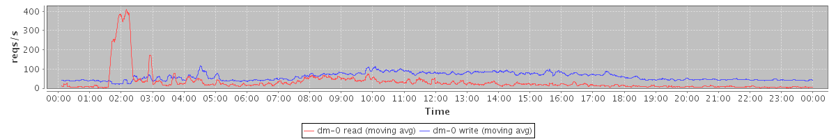 avg(dm-0 read) = 601.76 avg(dm-0 write) = 1299.47