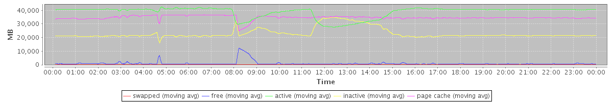 avg(swapped) = 2.14 avg(free) = 979.17 avg(active) = 38725.03 avg(inactive) = 23120.01 avg(page cache) = 34690.89