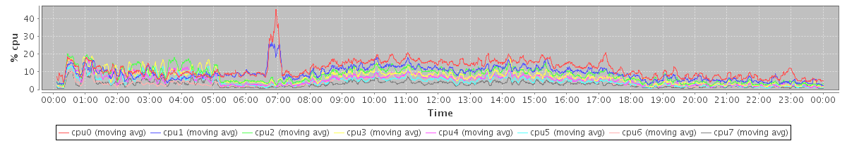 avg(cpu0) = 0.23 avg(cpu1) = 0.31 avg(cpu2) = 0.13 avg(cpu3) = 0.12 avg(cpu4) = 0.08 avg(cpu5) = 0.08 avg(cpu6) = 0.05 avg(cpu7) = 0.06