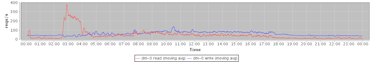 avg(dm-1 read) = 1205.02 avg(dm-1 write) = 432.51
