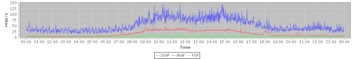 Host zm04.stanford.edu: Mailboxd: Request Rate by Client Protocol