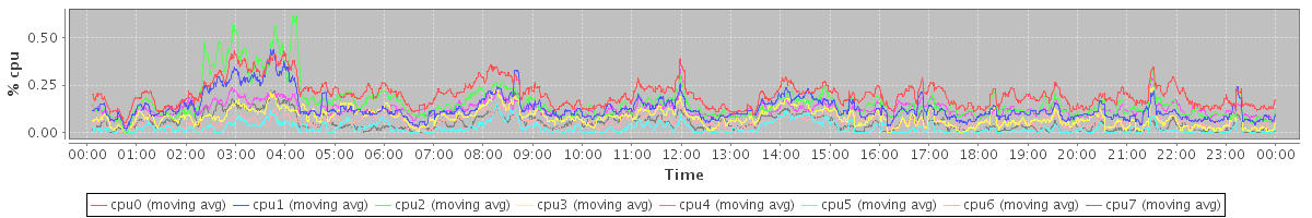 avg(cpu0) = 0.22 avg(cpu1) = 0.34 avg(cpu2) = 0.10 avg(cpu3) = 0.12 avg(cpu4) = 0.08 avg(cpu5) = 0.07 avg(cpu6) = 0.07 avg(cpu7) = 0.10