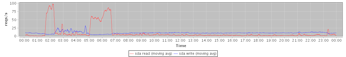 avg(sda read) = 10.14 avg(sda write) = 10.15