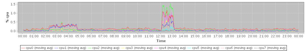 avg(cpu0) = 0.11 avg(cpu1) = 0.18 avg(cpu2) = 0.05 avg(cpu3) = 0.03 avg(cpu4) = 0.03 avg(cpu5) = 0.03 avg(cpu6) = 0.04 avg(cpu7) = 0.04
