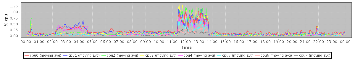 avg(cpu0) = 0.23 avg(cpu1) = 0.32 avg(cpu2) = 0.12 avg(cpu3) = 0.12 avg(cpu4) = 0.07 avg(cpu5) = 0.08 avg(cpu6) = 0.03 avg(cpu7) = 0.06