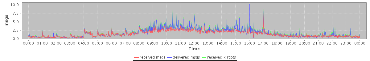 avg(received msgs) = 1.43 avg(delivered msgs) = 1.67 avg(received x rcpts) = 1.79