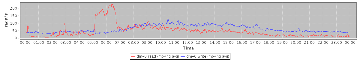 avg(dm-0 read) = 802.01 avg(dm-0 write) = 1354.68