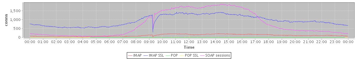 avg(IMAP) = 118.06 avg(IMAP SSL) = 945.38 avg(POP) = 0.15 avg(POP SSL) = 4.58 avg(SOAP sessions) = 764.88