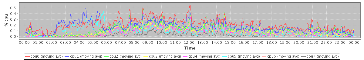 avg(cpu0) = 0.24 avg(cpu1) = 0.31 avg(cpu2) = 0.14 avg(cpu3) = 0.15 avg(cpu4) = 0.09 avg(cpu5) = 0.09 avg(cpu6) = 0.04 avg(cpu7) = 0.07